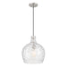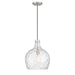 Amplify the look of any space with this beautiful 1-light pendant! It features a shade of highly textured hammered glass that takes center stage, held on a sleek black hanging cord and accentuated by hardware in a Brushed Nickel finish. This pendant is 12.75" in width and has an adjustable height ranging from 15" to 135". Uses 1 standard size bulb of up to 60 watts. Bulb not included.