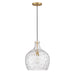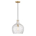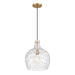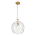 Amplify the look of any space with this beautiful 1-light pendant! It features a shade of highly textured hammered glass that takes center stage, held on a sleek black hanging cord and accentuated by hardware in a Natural Brass finish. This pendant is 12.75" in width and has an adjustable height ranging from 15" to 135". Uses 1 standard size bulb of up to 60 watts. Bulb not included.