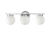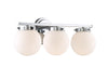 Illuminate your bathroom in chic, vintage-inspired style with this 3-light bath vanity bar. Orb-shaped shades of white opal glass mean you will get bright and comfortable light. The circular backplate echoes the shape of the shades, too. Chrome finish. 8" in height and 24" in width. Extends 7.25" from the wall.