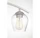 Shape up your bath lighting style with this 3-light bathroom vanity light! Between the curving arm, the wineglass-style clear glass shades and the circular backplate, it's the perfect way to brighten your bath. Brushed nickel finish. Can be mounted with shades facing up or down. It is 10.38" in height and 24" in width. It extends 7.13" from the wall. It uses 3 standard size bulbs of up to 60 watts per bulb, is LED compatible and is dimmable.
