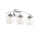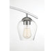 Shape up your bath lighting style with this 3-light bathroom vanity light! Between the curving arm, the wineglass-style clear glass shades and the circular backplate, it's the perfect way to brighten your bath. Chrome finish. Can be mounted with shades facing up or down. It is 10.38" in height and 24" in width. It extends 7.13" from the wall. It uses 3 standard size bulbs of up to 60 watts per bulb, is LED compatible and is dimmable.