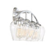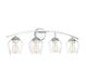 Shape up your bath lighting style with this 4-light bathroom vanity light! Between the curving arm, the wineglass-style clear glass shades and the circular backplate, it's the perfect way to brighten your bath. Chrome finish. Can be mounted with shades facing up or down. It is 10.38" in height and 32.75" in width. It extends 7.13" from the wall. It uses 4 standard size bulbs of up to 60 watts per bulb, is LED compatible and is dimmable.