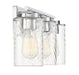 Make a big impact when you change out your old bathroom lights for this 3-light bath vanity light. It has a sleek look with intriguing shades of clear swirl glass and a chrome finish. Can be mounted with the shades facing up or down. 8.63" in height and 24" in width. Extends 5.5" from the wall. It uses 3 standard size bulbs of up to 60 watts per bulb, is LED compatible, is dimmable and is damp area rated.