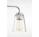 Featuring a simple, sleek design and conical shades of clear glass, this 3-light bath vanity light is a terrific way to improve the illumination and the look of any bathroom. Finished in polished nickel. Can be mounted with its shades facing up or down. 9.75" in height and 24" in width. Extends 6.5" from the wall. Uses 3 standard size bulbs of up to 60 watts per bulb, is LED compatible and is dimmable.