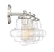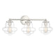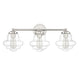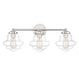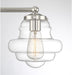 Bring a bold touch of vintage schoolhouse style to any space with this 3-light bath vanity light. It features a polished nickel finish and curving clear glass shades with eye-catching detailing. 10" height, 26" width. Uses standard size bulbs, max 60 watts per bulb. LED bulb compatible.