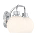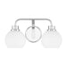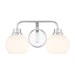 Freshen up your bathroom with the sleekly timeless style of this 2-light bath bar, which features orb-shaped shades of white opal glass that are open at the bottom and a versatile Chrome finish. It is 8.25" in height, 16" in width and extends 7.75" from the wall. It uses 2 standard size bulbs of up to 60 watts per bulb. Bulbs not included.