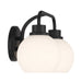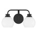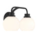 Freshen up your bathroom with the sleekly timeless style of this 2-light bath bar, which features orb-shaped shades of white opal glass that are open at the bottom and a versatile Matte Black finish. It is 8.25" in height, 16" in width and extends 7.75" from the wall. It uses 2 standard size bulbs of up to 60 watts per bulb. Bulbs not included.