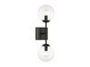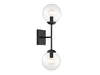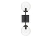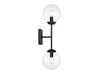 This slim and stylish 2-light sconce is an excellent choice for bold and helpful lighting in any space. Finished in Black with orb-shaped shades of clear glass. 20" in height and 6" in width.
