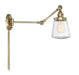 Go industrial with this cool 1-light swing-arm wall sconce, which features a seeded glass shade and Natural Brass finish. 12.63" in height and 6" in width. It can extend up to 23" from the wall.