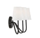 This clean and crisp 3-light wall sconce has a minimalistic look that makes it ideal for adding light to a room without too much fuss. It is finished in oil rubbed bronze and topped off with white fabric shades. 11.25" in height and 20" in width. Extends 8" from the wall. Uses 3 candelabra size bulbs of up to 60 watts each, is LED compatible, is dimmable and is damp area rated.