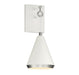 Get contemporary style with a vintage twist when you get this Meridian 1-light sconce, featuring a solid conical shade finished in white with polished nickel accents. 17" height, 6" width, extends 7.25" from the wall. Max 60 watt bulb, standard size A19 bulb recommended. LED bulb compatible. Damp area rated.