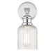 A clear ribbed glass shade adds texture and intrigue to this vintage-inspired Meridian 1-light wall sconce, which is finished in chrome. Perfect when used solo or in groupings. 12" height, 5" width, extends 6.75" from the wall. Max 60 watt bulb, standard size A19 bulb recommended. LED bulb compatible. Damp area rated.