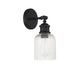 A clear ribbed glass shade adds texture and intrigue to this vintage-inspired Meridian 1-light wall sconce, which is finished in matte black. Perfect when used solo or in groupings. 12" height, 5" width, extends 6.75" from the wall. Max 60 watt bulb, standard size A19 bulb recommended. LED bulb compatible. Damp area rated.