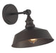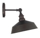 Bring a bold touch of vintage industrial style to any space with this 1-light adjustable sconce. It features a solid metal shade, eye-catching detailing and an oil rubbed bronze finish. 10" height, 10" width. Uses standard size bulb, max 60 watts. LED bulb compatible.