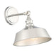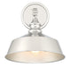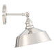 Bring a bold touch of vintage industrial style to any space with this 1-light adjustable sconce. It features a solid metal shade, eye-catching detailing and a polished nickel finish. 10" height, 10" width. Uses standard size bulb, max 60 watts. LED bulb compatible.
