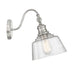 Bring a bold touch of vintage industrial style to any space with this 1-light adjustable sconce. It features a highly textured shade of glass, eye-catching detailing and a polished nickel finish. 11.5" height, 9" width. Uses standard size bulb, max 60 watts. LED bulb compatible.