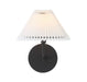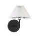 Find a polished and elegant lighting look with this 1-light sconce, which features minimalistic styling and a crisp white pleated fabric shade. Finished in matte black. 10.75" height, 9" width, extends 10.375" from the wall. Uses one candelabra size bulb with a max of 60 watts (not included). Damp area rated.