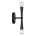 Make a scene with the unique silhouette of this 2-light sconce! Cone-shaped arms finished in Matte Black burst forth from the center, bearing bare bulbs to let the light shine brightly. This sconce is 10" in height, 4.75" in width and extends 4.5" from the wall. Uses 2 candelabra size bulbs of up to 60 watts per bulb. We recommend using globe-shaped bulbs for heightened appeal. Bulbs not included.