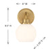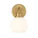 Freshen up your bathroom with the sleekly timeless style of this 1-light sconce, which features an orb-shaped shade of white opal glass that is open at the bottom and a versatile Natural Brass finish. It is 9.5" in height, 6" in width and extends 7.75" from the wall. It uses 1 standard size bulb of up to 60 watts. Bulb not included.