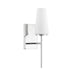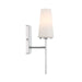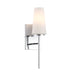 The stately style of this 1-light sconce is a superb choice for any space. A tall, sleek conical shade of white opal fluted glass sits atop a slender arm that is finished in Chrome. Use this sconce individually or in groupings to brighten up every room. It is 16" in height, 4.75" in width and extends 6.5" from the wall. Uses 1 candelabra size bulb of up to 60 watts. Bulb not included.
