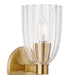 Create beautiful illumination with this 1-light sconce! Its ribbed glass shade brings in a big dose of textural intrigue and its Natural Brass finish adds richness. This sconce is 9.38" in height, 5" in width and extends 5.5" from the wall. It uses one candelabra size bulb of up to 60 watts. Bulb not included.
