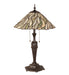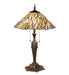 Thinly carved and polished Natural Jadestone in earthy tones of Moss Green and Ivory becomes luminescent in this wispy Willow leaf patterned shade. This stunning Jadestone shade is created using the famous Meyda Tiffany copperfoil construction technique and complemented with a table base in a warm Mahogany Bronze finish. The accent lamp is ideal for illuminating bedroom night tables, desks, and credenzas. The Willow Jadestone Table Lamp is featured in our American-designed, handcrafted Jadestone Lighting Collection. UL and cUL listed for dry locations. Each shade is a unique work of art with color variations based on natural ingredients inherent in the Jadestone.