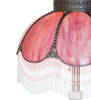 Embrace the timeless look of this classic art glass lighting design. Annabelle features a hand-carved Pink Art Glass Shade and Pink/White Glass Beaded Fringe, with Brass filigree finished in Craftsman Brown and highlighted to reveal an eye-catching dimensional look. The shade is complemented with an elegant Three Graces cast metal base finished in Mahogany Bronze. Perfect for placement near picture windows, tabletops, and desktops in fine homes from Cape May, New Jersey, to Old Louisville, Kentucky, to Kalamazoo, Michigan. The Anabelle Three Graces Fringed Table Lamp is featured in our American-made, American-designed, handcrafted Quality Bent Glass Lighting Collection and manufactured in Yorkville, NY. UL and cUL listed for dry locations. Our Quality Bent Glass division is over 100 years in the making and still creating timeless masterpieces using original tools and techniques from the days when we supplied Louis Comfort Tiffany Studios. Quality Bent Glass originally revolutionized the manufacturing process for high-temperature glass formation by custom building production capacity, glass-forming ovens, and kilns. We are one of the only remaining manufacturers of bent glass lighting and take pride in this rich heritage and expertise.