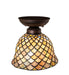 A Louis Comfort Tiffany studio classic... The renowned Fishscale design features a variegated Tortoiseshell of Emerald, Sapphire, Mauve, and Beige colored stained glass, evoking a unique dimensional and textured look in a rainbow of brilliant hues. This exquisite art glass shade is created using the famous Meyda Tiffany copperfoil construction process and enhanced with a Mahogany Bronze finish. The overall height can be adjusted by combining the four stem lengths that are included: 6-inch, 12-inch, 16-inch, and 24-inch, in any combination to achieve the desired drop from the ceiling. The Tiffany Fishscale Flushmount is included in our American-designed, handcrafted Tiffany Reproduction Lighting Collection. It is UL and cUL listed for dry and damp locations. Each shade is a unique work of art with color variations based on natural ingredients inherent in the glass.