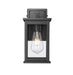 The Bowton II Collection of exterior sconces is a fresh take on the classic Art and Crafts design philosophy characterized by clean straight lines. The overall look creates the perfect vintage touch for modern farmhouse or craftsman bungalow. Finished in quintessential powder coat black with clear glass panels, the fixtures are available in a variety of sizes, making them the perfect selection for porches and walkways.