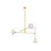 Rooted in mid-century modern design, the mobile-inspired Billie chandelier is easy on the eyes. Pivoting arms with matching shades in Soft White emit light in all directions, reflecting off the warm Aged Brass finish. Clean lines, symmetry, and implied movement combine to create an artful statement.