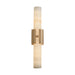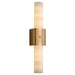 The Virtue collection of CCT 3000k/3500k/4000k LED lighting consists of a vertical, cylindrical diffuser crafted of natural Jade stone. The central section of the sconce is encased in a sleek, black metal bracket that secures the fixture to the wall. Choose from aged brass or black finishes.
