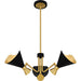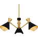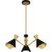 The Arden collection is a striking blend of modern design and functional versatility. The combination of matte black and gold finishes creates a visually appealing contrast, perfectly highlighting the geometric shape. The metal shades rotate in and out, but they can also be turned to face up and down to provide both ambient and task lighting options. Arden is available as a semi-flush mount, wall sconce, or chandelier.