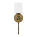 Shapely and eye-catching, the Aria sconce features a striking silhouette with a clear glass candle cup. In brushed nickel, it offers a crisp and classic vibe. Or choose the Weathered Brass colorway with an opal glass shade to warm up a powder room or entryway.