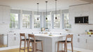 Though you can choose from a clear hammered glass shade, beige fabric shade, classic chandelier, or an airy, open-frame pendant, Blanche features a unifying style via its simple lines and traditional matte black finish. The different shapes, from flush mount to chandelier, also work well together throughout a variety of spaces.