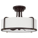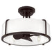 Nestled within the Calvary semi-flush mount's white fabric shade is a vintage-inspired fan, casting both a soft glow and cool, refreshing air via a three-speed, reversible motor. Crafted from steel in a handsome western bronze finish, this piece is supremely functional without sacrificing form: Calvary offers classic style in spades.