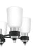 The transitional style of the Conrad collection is both sleek and modern. A stately silhouette finished in matte black and accented with brushed nickel creates the perfect amount of sophistication, and the etched glass shades add a pleasant glow to any room.