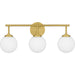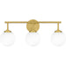 Make a home spa-inspired statement with Eloise bath lights. The spherical shades are comprised of opal etched swirled glass, creating a unique look that softens the light in style. Paired with an aged brass finish, Eloise is the perfect complement to any mid-century modern vanity. Install with shades facing up or down to best suit your preference.