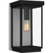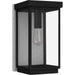 Classic meets modern in the Ezra outdoor wall lantern. A rectangular earth black frame pairs with clear tempered glass panels for a time-tested look. A unique backplate resembling concrete gives Ezra the finishing touch - adding an extra layer of flair and modern industrial style. Flank your front door with Ezra - or light up your porch or backyard to create the perfect setting for outdoor entertainment.