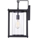 The Garrett collection will instantly enhance the exterior of your home. The minimalist design with clean, thin lines creates a modern look that you and your guests are sure to enjoy. The open frame is crafted from steel, finished in Matte Black and contains a clear cylindrical glass shade for a unique design element.