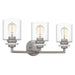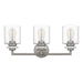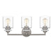 Choose two, three or four bulbs in the Jaspar bath light to fit your bathroom's space and style. Clear glass shades maximize light in a simple, cylindrical shape. An antique nickel finish offers a touch of cool-toned shine.