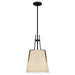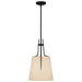 Leona's natural linen shade adds rich texture to its striking, on-trend design. Linear iron details provide sumptuous contrast to this mini pendant or semi-flush mount, creating a tasteful addition to transitional spaces. A matte black finish rounds out Leona's transitional styling.