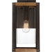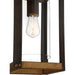 Create a welcoming look for you and your guests with the Marion Square collection. The rectangular silhouette is finished in Rustic Black and complemented by a painted Aged Walnut Wood for a transitional yet rustic style fixture. The open steel frame highlights the clear glass cylindrical shade and evokes a bright light within your home's exterior.