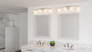 A classic silhouette and square glass shades make up Myra. The clear glass shades are painted white on the inside, giving off a soft romantic glow ideal for any bathroom. Choose from two, three, or four lights in this collection of timeless Brushed Nickel bath lights.