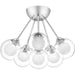 Find yourself mesmerized by the vintage beauty of the Spellbound, a stunning member of Platinum by Quoizel. Inspired by the sputnik designs of decades past, this collection is truly retro reimagined. Spheres of shimmering ice glass are encased in outer shades of clear glass for added glitz, while polished chrome arms and sockets add a contemporary edge.