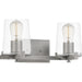 Add transitional flair to your home with Perry bath lights. Clean lines and clear glass shades create a simplistic silhouette, making Perry perfect for any industrial or modern farmhouse setting. Choose from two or three lights in either Weathered Brass or Antique Nickel or to upgrade your bathroom lighting today.