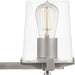 Add transitional flair to your home with Perry bath lights. Clean lines and clear glass shades create a simplistic silhouette, making Perry perfect for any industrial or modern farmhouse setting. Choose from two or three lights in either Weathered Brass or Antique Nickel or to upgrade your bathroom lighting today.