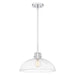 Clear seeded glass adds effervescent charm to the Iona pendant. This airy, bright design available in your choice of two cool-toned finishes: brushed nickel or polished chrome. Add in a vintage style bulb (not included) for a dash of retro-inspired flare.