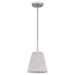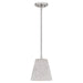 Both on-trend and timeless, the Hazel mini pendant features a playful Terrazo shade, casting whimsical shadows. The simple silhouette is paired with a brushed nickel finish, creating a clean yet sophisticated look. This unique piece makes a great statement over a bar area of kitchen island.