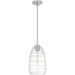 Clear line glass adds major visual intrigue in the Asher mini pendant. The sleek, minimalist design accentuates the unique glass shade and is highlighted by your choice of brushed nickel or matte black finish. Hang mini pendants alone or in a grouping over a kitchen island, bar area, or table setting.