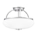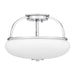 The Easton semi-flush mount features an opal glass shade to cast soft, ambient light in a hallway or foyer. Hang Easton in a variety of transitional or minimalist settings for a touch of style. Available in two silvery tones â brushed nickel or polished chrome.